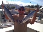 Before the cold front passed through, the 100 - 200 foot zone was the place to get plenty of action with kingfish, AJ's, and small sharks.  The surface action for these fish was poor at best.  All the bites were on either the mid-depth baits or the bottom baits.  Fishing the deeper wrecks has been to say the least an adventure.  We've seen plenty of action with either sharks or AJ's.  Getting them to the surface is another story.