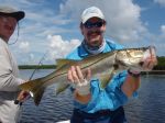 Snook fishing has been good.Once the water temperature drops a bit more, it will be great.Many of the fish that we’ve caught lately have been just under the slot at 20 inches to 27 inches long.However, catching 20 to 30 fish in a row is great fun no mater what size they are.We did catch a 31 inch snook last week, proving that there is always some large fish mixed in with the small fish.The 31 inch snook was caught by Wade Boggs in the Hooked on Hope Fishing Tournament to benefit breast cancer that we participated in.The snook was just one of the three fish that Wade caught.He also caught a 28 ¾ inch redfish and an 18 ½ inch trout for a slam total of 78 ¼ inches and a first place win.