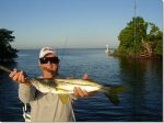 Our first stop was a good one for Larry. The first cast found a snook on the end of Larry's line. He was amazed at that, and asked how it could be that easy. In the next hour Larry caught several nice jack crevalle and a trout or two. By then the tide was high enough to have the fish on the move to other greener pastures.