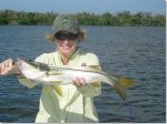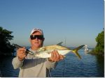The low tide was an hour later making the first stop potentially much better than it had been the day before. I was expecting a good snook bite. But, instead we caught several nice trout and a jack crevalle that Kathleen thoroughly enjoyed. The snook just weren't interested. We moved on.