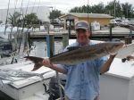 Fernando Godinez, his father-in-law Larry Hofmann, Larry's 10 year old grandson, Lyndon Hofmann, and friend Robert Abramitis fished a 1/2 day in the afternoon. We loaded the livewell with pilchards and ran offshore starting in 160 feet. Our first action came on the bottom rod in the form of a kingfish. Lyndon had first honors and whipped the king in nothing flat. Moving out to 200 feet, the downrigger scored next with another kingfish. On the next drift, the bottom rod took off like crazy. Lyndon used all the strength he could muster to turn the handle. The fish kept taking line and soon he needed some help. While Robert was putting on a rod belt, I managed to turn the fish's head and get it coming up, at least temporarily. Robert took over and felt the power of the fish immediately. He kept up steady pressure as the fish slowly began to give in. Once we got the sinker to the surface, I grabbed the leader and finished pulling the 40# amberjack to the surface and put it in the fish box. We finished the trip with making a couple of drops on several wrecks. We had a goggle eye get crushed and spit out, however, we did not hook up.