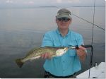 I wanted to put them on some great big trout action. I headed out to one of my favorite potholes, but to my chagrin, in the overcast conditions, I couldn't find it. There aren't easily used landmarks to help you find this hole. I moved on to another hole that is always full of trout, but they don't have the size of the fish in the hole I was looking for. This hole has easily useable landmarks, and we were quickly on the fish. We caught them on shiners and RT Slugs, and stayed with it until it was time for us to go to lunch. We capped off a great day with another world class lunch at the Waterfront Restaurant. It had been a great day with some action and some great fish, and Bob seemed to be very happy with the results.