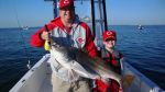 Our first cast was immediately slammed by a large drum. Sadly the fish quickly broke free. We used the trolling motor to quietly ease up on the school and once again hooked up. It was game on with over 50 pounds of Black drum on one end and 90 pound Nolan on the other end. Nolan was amazing to say the least, using a medium action rods he worked the Drum to the boat 3 or 4 times over 20 minutes. Finally Dad jumped in and had the Drum boat side in another 10 minutes.