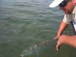 When the clouds cleared for bright blue skies, permit were easily spotted along some of the flats edges. Many of the permit that have been spauning offshore are once again cruising oceanside and backcountry flats. Live crabs and crab-like flies have been working best. A cast just past the fish and up-current allows the permit to spot the crab as it sinks. It will swim over and gulp the shrimp in or pin it to the bottom and “tail” on the crab to eat it. Using circle hooks in these instances is the safest choice for the fish, which can swallow the bait while the hook almost always sticks just in the corner of the mouth.