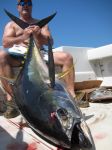 For the most part, this past winter bite was like a roller coaster! From day to day we never knew where the fish were going to show up or when they would eat! We did have some great days, I think our best day, Capt Gray had 9 yellowfin and I had 7 with a few blacks mixed in! I will post pics of this day, this was mid March. We caught everything on 80 pound Frenzy Fluoro and 6/0 and 7/0 Frenzy and Mustad circle hooks, all were caught with cut pogie or bonita!