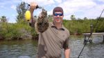 Our first stop garnered a Ladyfish and a pinfish and a wild boar on the shoreline watching us. I made a small move and bingo our first sign of life as we had several small snook blow up on our baits. Joe was first to get feisty 18” snook to the boat. Joe followed that with a small redfish then the bite stopped as quickly as it started. I moved to a series of docks where once again Joe got into the action. Joe’s rod bent double and line screamed from his reel. The fish presumably a big snook got into the pilings and that was the end of that. We did catch a very nice flounder, check out this picture.