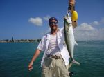 Twice we had schools of bluefish show up which inhaled every bait or lure in sight. Soft plastic jigs were demolished in several casts. Trout where mixed in on this deep grass flat but were smaller than they had been all around 14-15”.