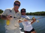 Paul and his wife Sonya were awesome, a true pleasure to have onboard. Captain Steven really wanted to get them the Grand Slam so we ran across Tampa Bay to the Port Manatee area. Tossing and chumming live white baits into the Mangroves prompted some action. Paul had a nice blowup tight to the Mangroves, after several jumps Paul landed a nice 22” snook.
