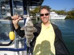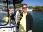 Working docks along deep muddy bottom canals is were we started. Dock after dock Dave perfectly dropped live shrimp. The first hour yielded only a few hits. Finally Dave got the skunk of the boat landing a chunky black drum.