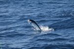 On the 15th we decided to go daytime swordfishing to get some good footage. Leaving the dock at 6:30AM we headed for the sword grounds about 20 miles off the shores of Ft. Lauderdale in 1800 feet of water. About 90 minutes later we drop our first bait, a bonito belly strip with a 10-lb. lead weight all the way to the bottom. Leo and Darrin set up a kite with a shark bait on long, a goggleye in the middle, and a sardine on the short and wait for the bites. The action started before noon when we got a double-header mahi-mahi, both fish around 25 lbs. Darrin picked up another 40 lb. mahi on a spinning rod and it was a good tussle with 3 fish on at the same time. The crew boated all 3 fish as Leo saw another and pitch-baited another 20 lb. fish. That gave us 4 nice, big dolphin on the last day of the shoot, but not we never got a daytime swordfish bite.