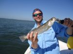 Next up we ran to a nearby grass flat to target trout in 2-5’ of 72 degree waters. Trout to 21” hammered shrimp after shrimp under float while white baits worked the pace was slower. Every 15 minutes like clockwork a Spanish mackerel would crash the party with lightning strikes. When the bite slowed I would use the trolling motor to make short moves as to not spook the schools of trout and redfish.