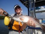 The guys were awesome they kept working and working and made the most of less than stellar fishing. We moved into the Mangrove Islands only to find another boat on my redfish hole. I moved to another spot I like and things got better. We had several good hits and snook blow ups but we didn’t land any. Then Hudson’s line ran off and he was tight to his first redfish. Skillfully he landed the bronze beauty took a quick picture and release him to fight another day.