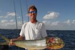 We have also been trolling for, and catching bonitos and kingfish, along with mahi-mahi. They have been hitting sea witch feathers tipped with bonito strips, pulled behind planer boards. We are using planers that dive 50-75 feet under the surface. We are also hooking up a few wahoo and blackfin tuna on these planers.