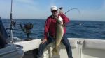 Surface temperature is up to 55 degrees and the fish are 30 feet to bottom. The weather has been perfect fishing has been consistent. Heavy coolers the last four days with mostly Chinooks and Coho. Chinook to 18 pounds are screaming line and all are enjoying some great action. Fish from 60 to 125 feet of water anywhere east of Milwaukee. The hot bait was the Magnum size Reaper Fish n Chip spoons made by