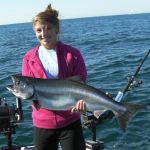 Lakers a plenty with some Coho and Chinook too. To get my fish reports and how to videos first go to http://www.jimhirt.com By subscribing you will keep ahead of the other anglers. When I post you will get it fast! Alyssa Bryant brought her beautiful family out fishing and after a hard fight landed this 17 plus pound Chinook. Great job Alyssa!!