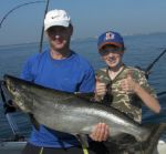Lakers dominate the catch with Chinooks and Coho coming on strong. To get my fish reports and how to videos first go to http://www.jimhirt.com By subscribing you will keep ahead of the other anglers. When I post you will get it fast! Gavin and Dale Proctor teamed up to crank in four hundred feet of line to land this 27 plus pound Chinook. Great job guys!! This fish was taken on a Vulcan Magnum Silver Lizard spoon.