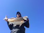 John Valenti was down from North Carolina and was determined to fish on Fri Feb 20. The high temp this day was 42 degrees...record cold for Jax. However, he caught this 30+ pound red on a jig and shrimp. Braided line with floricarbon leader was used as well. He fished the same area two weeks prior and was spooled with lighter line. Has us all wondering if this was the fish or at least one like it.