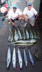 The mahi mahi have started moving in as is typical for this time of year and the tuna bite on the buoys and ledges has been pretty good too. There’s obviously been a new hatch of both mahi mahi and tunas because on the few charters I have had this month, I’ve been picking up some real small babies of both. I’ve seen a few spearfish flags hanging in the harbor and I usually do pretty good with those because I pull small lures on stand-up tackle out in the deep. I guess I’ve just been able to steer around them. Recently I caught some ono out in the deep but from what I hear from other fishermen, the near shore ono bite is still real slow. It’s the end of their season anyway but one thing about ono, we can have a good run any month of the year.