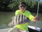 Paul Stanek, who fished with me earlier this month, fished southern Estero Bay’s backwaters, along with his brother, Rich, on Friday morning, 2/21. It was a windy day, with a cold front moving in, but the wind was blowing the right direction for a good tide, and the guys had a productive morning for their catch-and-release trip. Using live shrimp, they caught nine sheepshead, including two keeper-sized at 14 inches, along with a couple of mangrove snapper shorts, and three redfish to 19 inches.